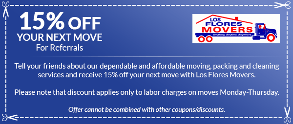 Los Flores Movers were awesome! They arrived on time, constantly worked till job finished! This was our first time using them for our moving job. We will use them again!! Job Well Done!! Thank you!!